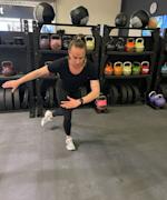 Rett opp overkroppen igjen mens du senker benet tilbake til startposisjonen.