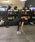 Løft det bakre benet samtidig som du bøyer overkroppen gradvis fremover. Bøy kneet noe på det benet du står på. Hold ryggen rett mens du bøyer deg fremover.