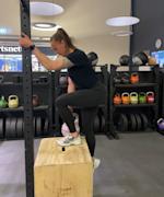 Plasser det ene benet på boksen. For å konsentrere deg om styrken, støtt deg gjerne til noe.